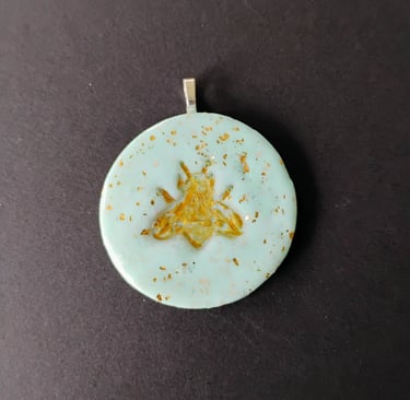 A wearable button, hand-crafted with gold stamping, reminding us to "bee" kind to one another